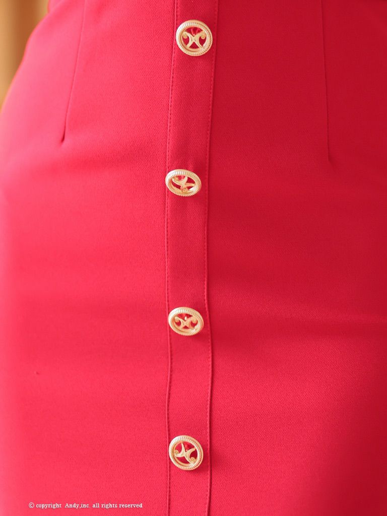 キャバドレス Andy アンディ 高級肩あき袖ありウエストベルトジップショルダーリボンゴールドボタンタイトミニドレス