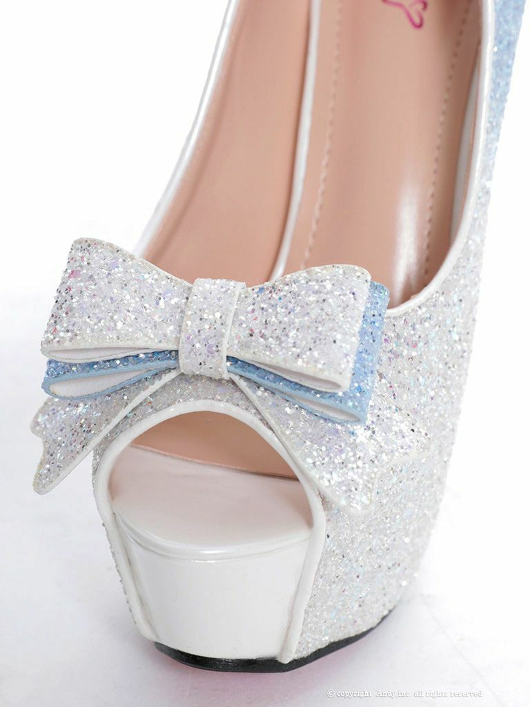 4. [an/アン] 高級グリッターラメグラデーションリボンモチーフオープントゥキラキラハイヒール