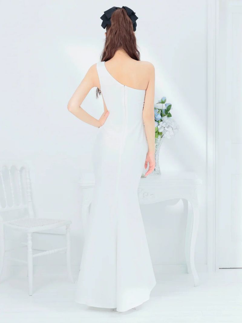 4. [Angel-R/エンジェルアール] 高級 ワンショルダー バストカット ビジュー くびれ ゴージャス 谷間魅せ タイトロングドレス