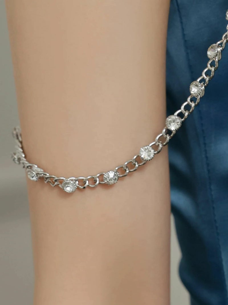 4. [Veautt/ヴュート] 高級 ブランド タイト膝丈ドレス ワンショルダー ビジューチェーン ウエストタック サテン 大人 ワンカラー (伊藤舞雪着用)
