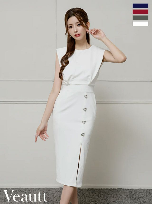 他の画像を見る シンプルで魅せる1着♡ [Veautt/ヴュート] 高級 ブランド タイト膝丈ドレス ノースリーブ パールボタン 胸元カバー スリット 大人 シンプル ワンカラー (伊藤舞雪着用) ¥ 30,580 税込 お気に入りに追加
