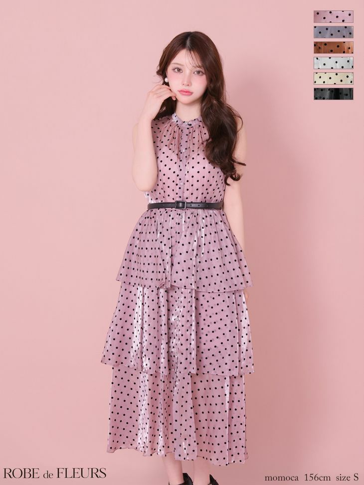 他の画像を見る ガーリーさの中にも上品さ溢れる♡ [ROBEdeFLEURS/ローブドフルール] 高級 ブランド Aラインロングドレス ノースリーブ ドット柄 ウエストベルト オーガンジー エレガント ¥ 31,680 税込 お気に入りに追加