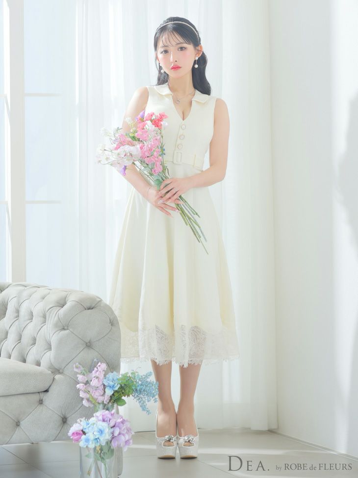 他の画像を見る フラワーレースが高級感UP☆ [AndyGLAMOROUS/アンディグラマラス] 高級 ノースリーブ フラワーレースリボン 膝丈 ロングテールドレス ¥ 29,700 税込 お気に入りに追加