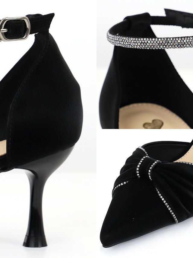 中央の立体感のあるリボンが目を引くパンプス