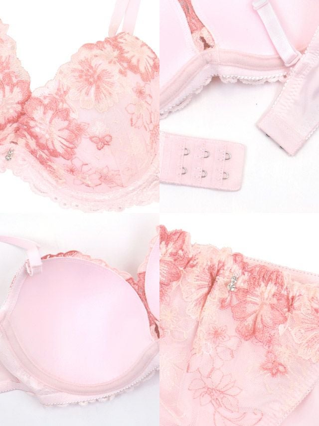 フェミニンフラワー刺繍カップブラジャー&ショーツ2点セットのフロントバック