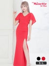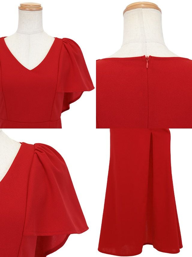 女性らしい美シルエットをメイク♪ フリル袖Vネックサイド半袖Aラインロングドレス (向葵まる着用)