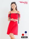 リボン付き肩あきオフショルダーワッフルフレアミニドレスのサイズ表 リボン付き肩あきオフショルダーワッフルフレアミニドレスのスペック表