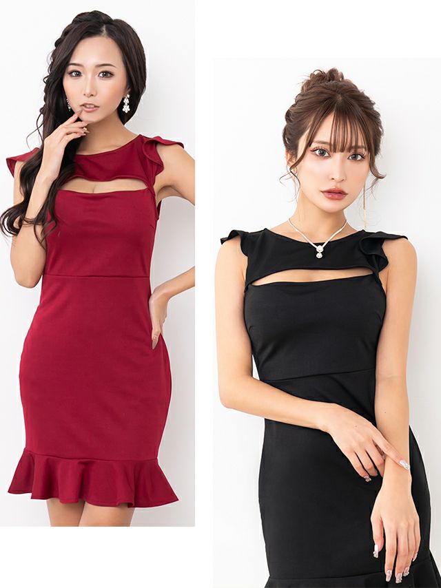 キャバドレス myMinette マイミネット シンプル ノースリーブ 裾フリルデザイン バストカット タイト ミニドレス