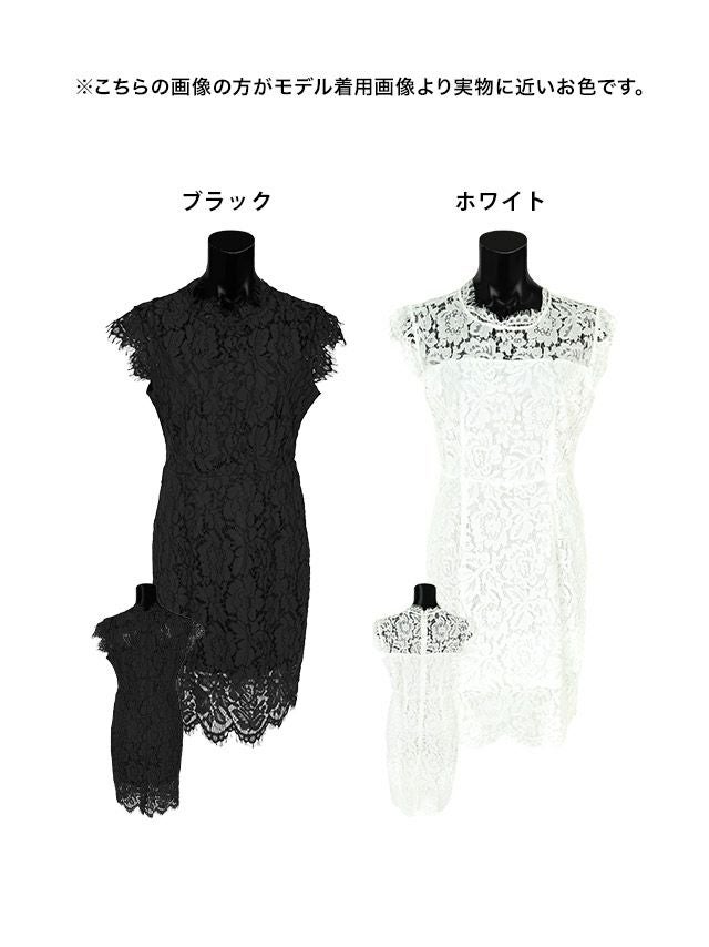 4. [SUPER SALE] ワンピース 安い タイト膝丈ドレス シンプル レース 大人 胸元カバー 半袖 ブラジャーのまま (林姫奈妙着用)