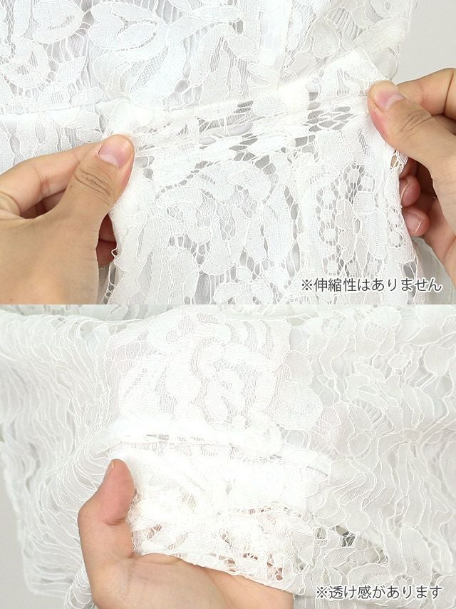 フリル袖総レース膝丈プチプラドレス