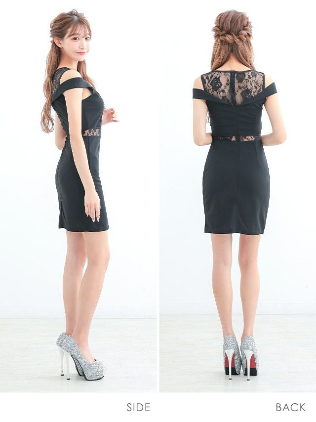 上品&SEXY!美スタイルドレス♪ フラワーレース肩出し 二の腕カバータイトミニドレス (せいせい着用)