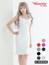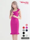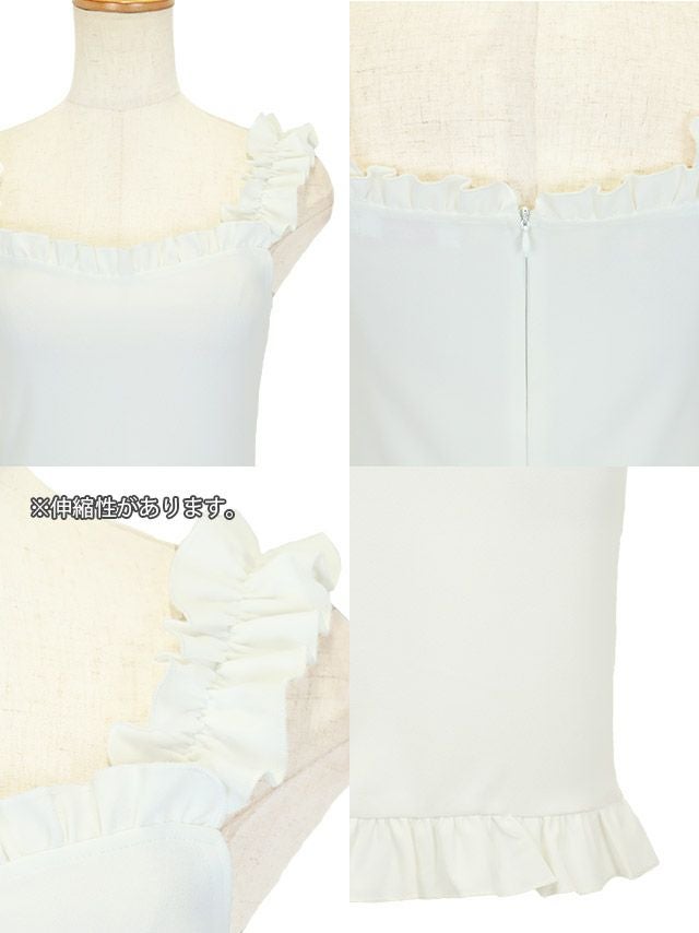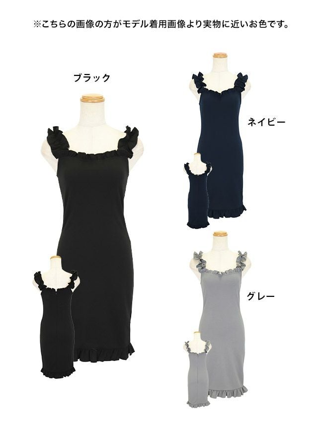 フリルデザインワンカラーノースリーブストレッチタイト膝丈ドレスのメイン画像