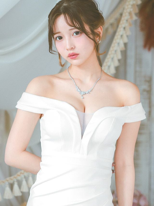 大胆なオフショルダーで美しいデコルテラインを露出し、
