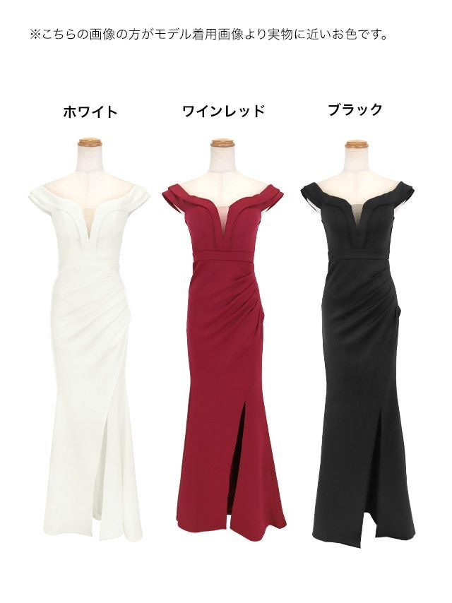タイト ロングドレス オフショルダー 谷間 大きいサイズ 大人 シンプル スリット バストシースルー ストレッチ ギャザー ラップのカラーバリエーション