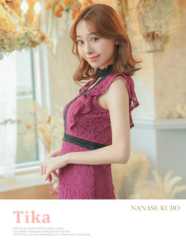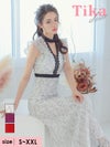 キャバドレス ロング丈 マキシ丈 大きいサイズ Tika ティカ ノースリーブフリル袖デコルテカット総レースAラインロングドレス