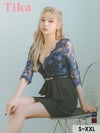 5. ミニドレス 袖あり 谷間 刺繍シアーレース バストジップ アシメペプラム ウエストベルト XXL 大きいサイズ タイト ミニドレス (浦西ひかる着用) [tk-md118501]