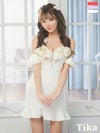 お洒落&可愛いを最大限に演出♪ 肩出し 二の腕カバーゴージャス胸元フリルシップツイードタイトミニドレス (Sサイズ~XLサイズ) (黒崎みさ/キャバドレス着用)