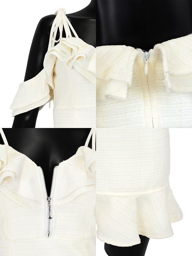 肩あきゴージャス胸元フリルシップツイードクリスマスタイトミニドレスの商品詳細1