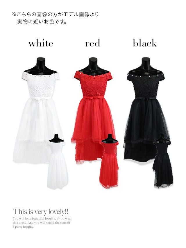 バースデー オフショルダーレースハイウエスト切替フレアチュールロングテールドレスのカラーバリエーション