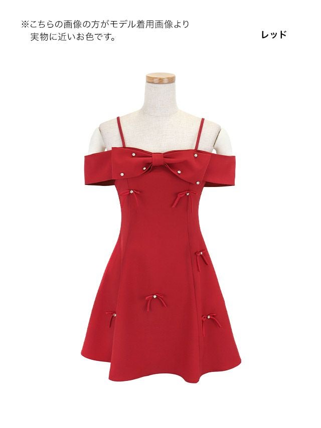 ミニドレス Aライン ビジュー ワンピース リボン 同伴 肩あき バレンタイン 赤ドレス キャバドレスのカラーバリエーション