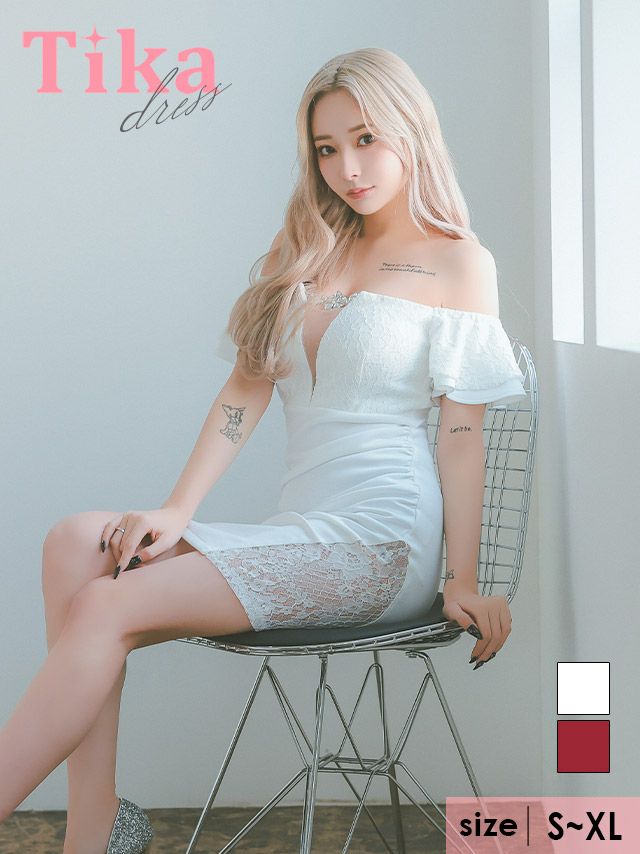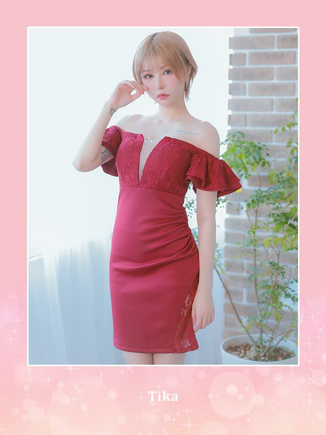 キャバドレス ミニ丈 大きいサイズ タイト オフショルダー ミニドレス レース キャバクラ