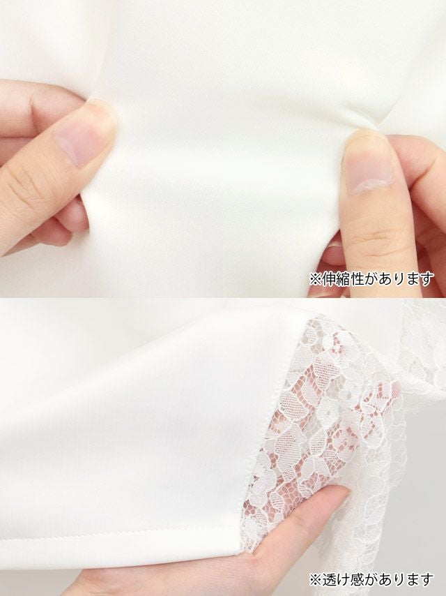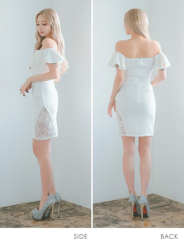 バストヌーディービジューオフショルダーレースフリル袖ストレッチタイトミニドレスのカラーバリエーション