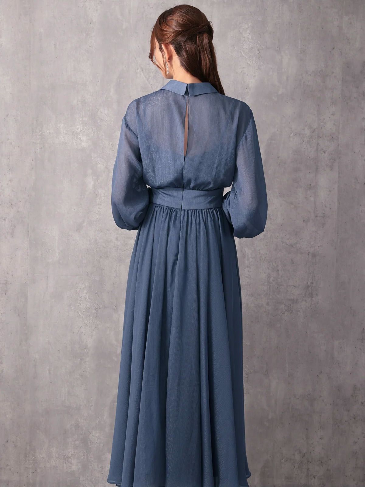他の画像を見る 清楚で上品な印象に♡ [Veautt/ヴュート] 高級 ブランド Aラインロングドレス 長袖 襟付き ウエストマーク シフォン 大人 ワンカラー ¥ 32,780 税込 お気に入りに追加