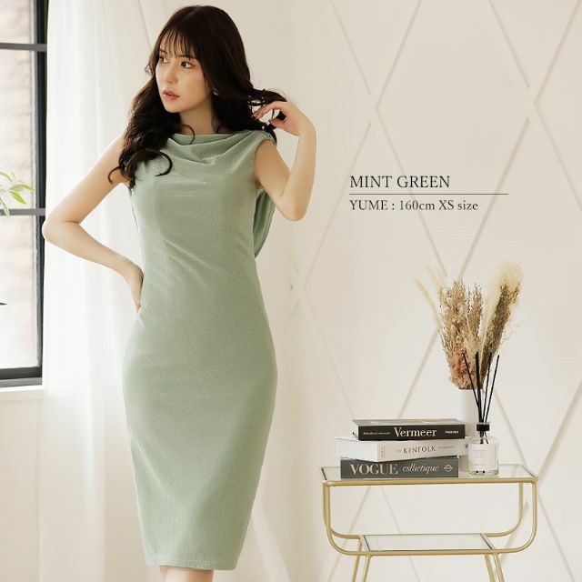 5. [Veautt/ヴュート] 高級バックリボンビジュードレープノースリーブタイト膝丈ドレス
