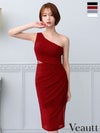 シンプルでスタイリッシュな一着☆ [Veautt/ヴュート] 高級ワンショルダーウエストカットラメタイト膝丈ドレス