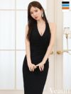 4. [Veautt/ヴュート] 高級 背中魅せ バックチェーン ホルターネック ギャザー タイト 膝丈ドレス