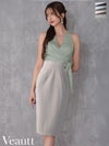 5. [Veautt/ヴュート] 高級 ブランド タイト膝丈ドレス 谷間 ノースリーブ バストチェーン ウエストリボン バイカラー ジップスリット (ゆいぴす着用)