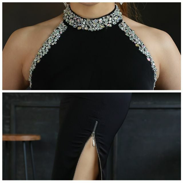 5. [Veautt/ヴュート] 高級ビジューサイドジップホルターネックタイト膝丈ドレス