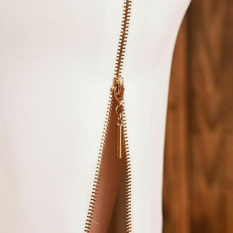 4. [Veautt/ヴュート] 高級 ノースリーブ テーラードカラー 襟付き ウエストカット ジップ タイト膝丈ドレス