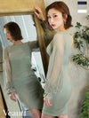 6. [Veautt/ヴュート] 高級メッシュ長袖 袖ありバックオープン膝丈タイトドレス