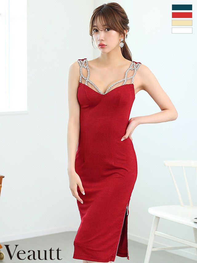 4. SALE [Veautt/ヴュート] 高級ノースリーブビジューショルダーサイドジップタイト膝丈ドレス