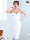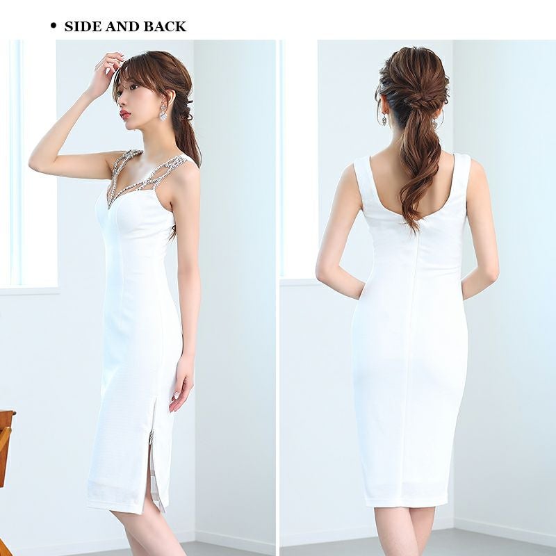5. SALE [Veautt/ヴュート] 高級ノースリーブビジューショルダーサイドジップタイト膝丈ドレス
