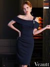 5. [Veautt/ヴュート] 高級オフショルダージップシンプルワンカラータイト膝丈ドレス