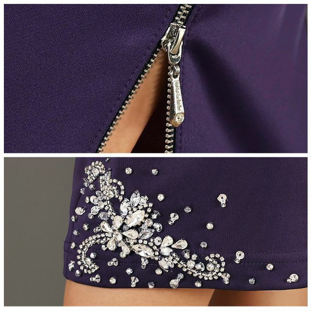 大胆に谷間魅せ☆ [Veautt/ヴュート] 高級Vネックギャザーサイドジッパービジュー刺繍ノースリーブタイト膝丈ドレス