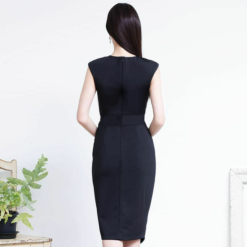 4. SALE [Veautt/ヴュート] 高級サークルチャームアッパータックベルトノースリーブタイト膝丈ドレス