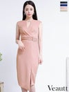 4. SALE [Veautt/ヴュート] 高級サークルチャームアッパータックベルトノースリーブタイト膝丈ドレス