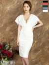 3. SALE [Veautt/ヴュート] 高級ワンカラーバストチャーム半袖タイトひざ丈ドレス