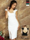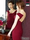 4. SALE [Veautt/ヴュート] 高級アシンメトリーカッティングデコルテチェーンノースリーブ膝丈ドレス
