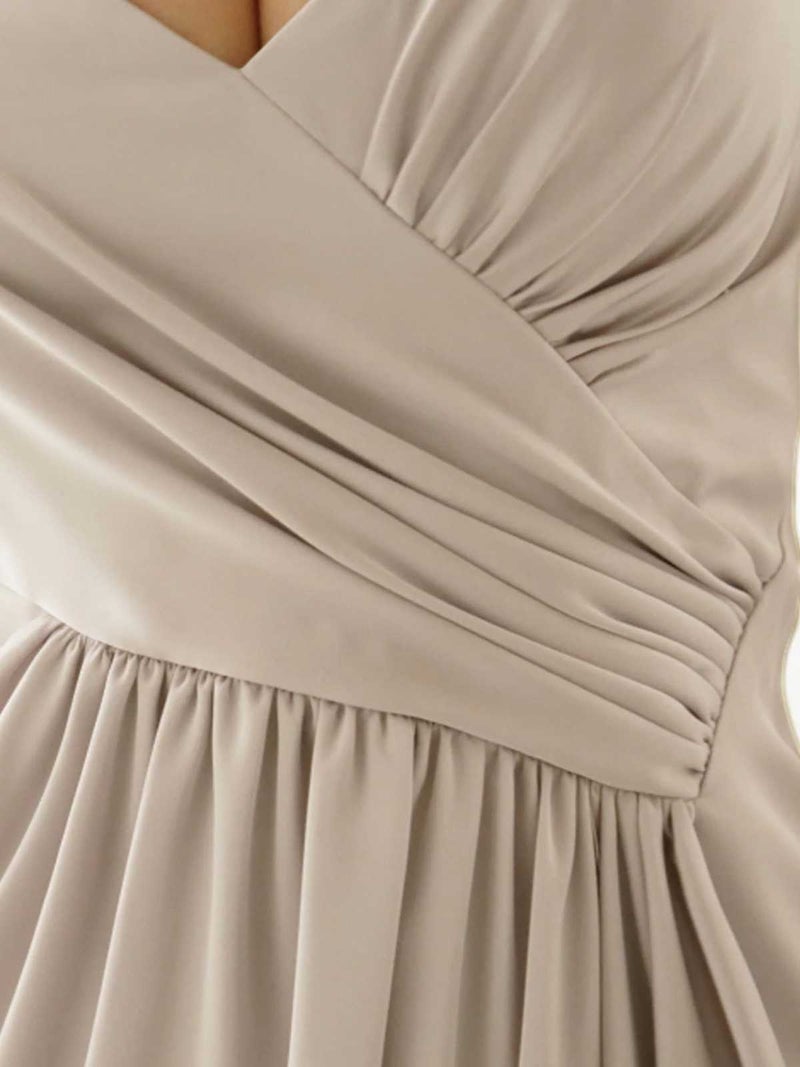 5. 予約商品【4月下旬入荷予定】[Veautt/ヴュート] 高級 ブランド タイト膝丈ドレス 谷間 キャミソール カシュクール フリル サテン ワンカラー