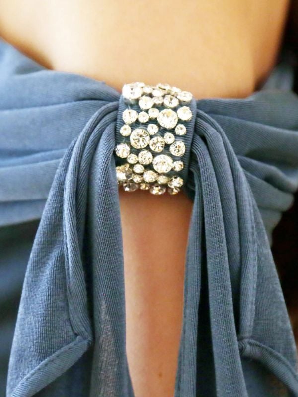 4. 予約商品【4月下旬入荷予定】[Veautt/ヴュート] 高級 ブランド タイト膝丈ドレス ワンショルダー ドレープ ショルダーリボン ビジュー タック