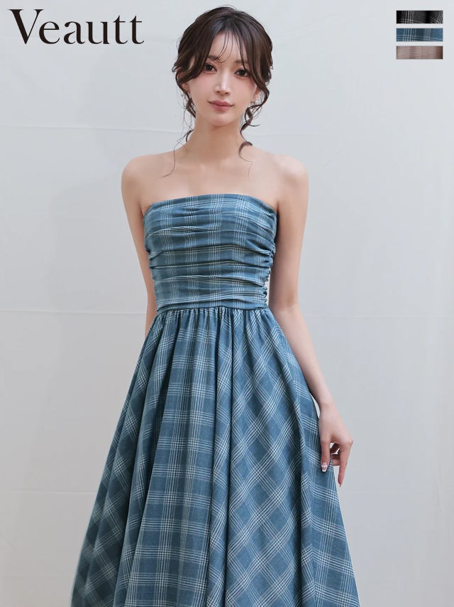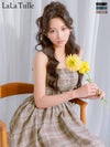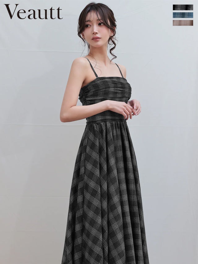 上品な可愛さを引き立てる♡ [Veautt/ヴュート] 高級 ブランド Aライン 膝丈ドレス ベア キャミソール 2way チェック柄 胸元カバー ギャザー (ゆいぴす着用)