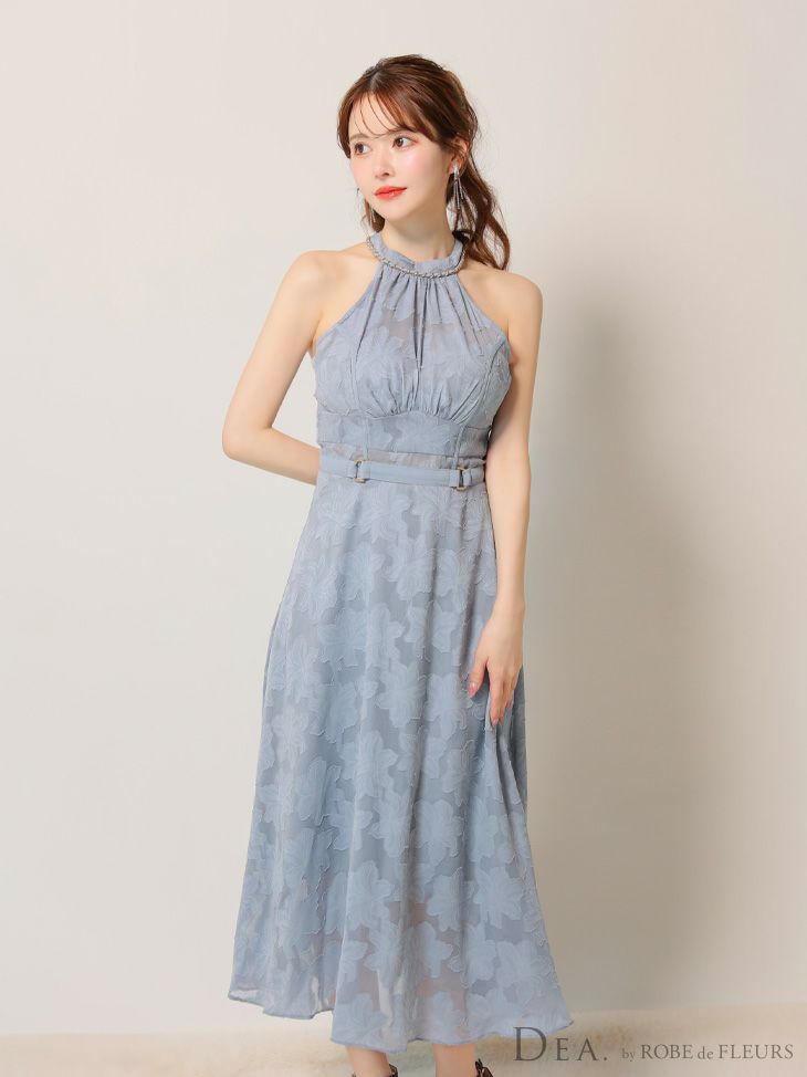 4. [DEA.byROBEdeFLEURS/ディアバイローブドフルール] 高級ホルターネックウエストベルトレースシンプルAラインロングドレス