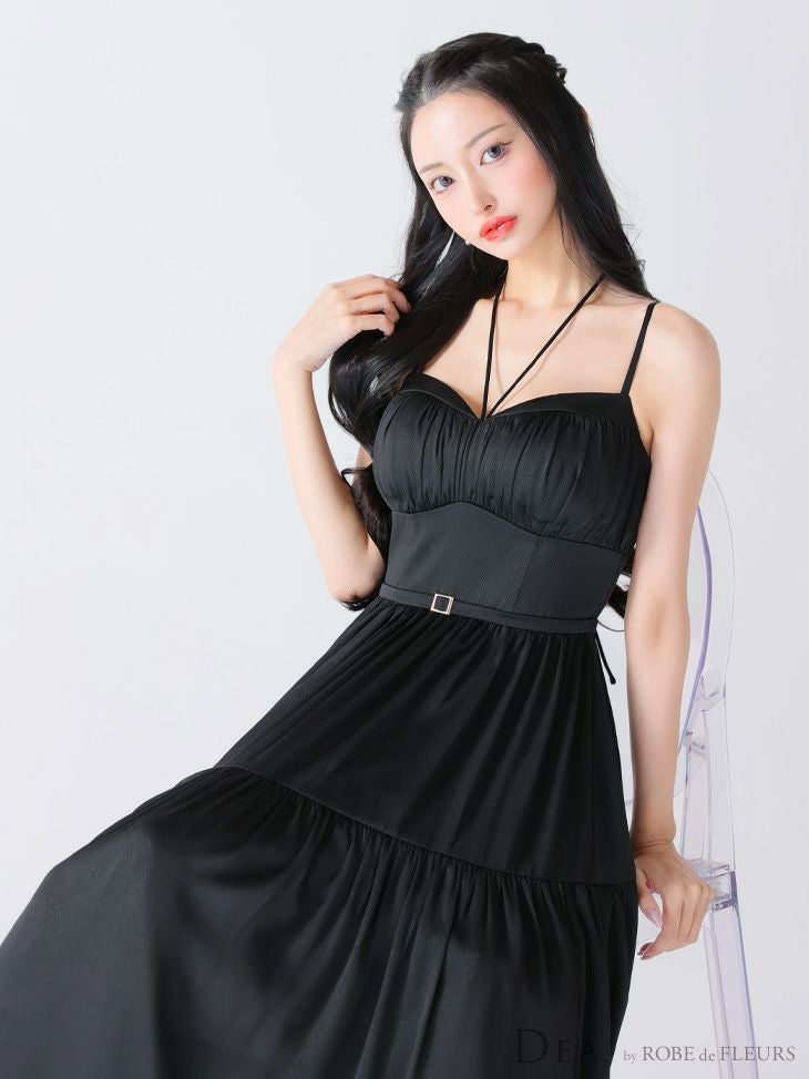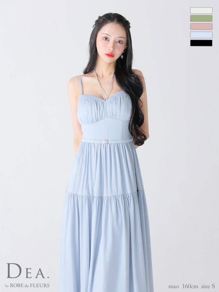 6. [DEA.byROBEdeFLEURS/ディアバイローブドフルール] 高級ホルターネックリボンキャミソールウエストベルトラメシフォンAラインロングドレス