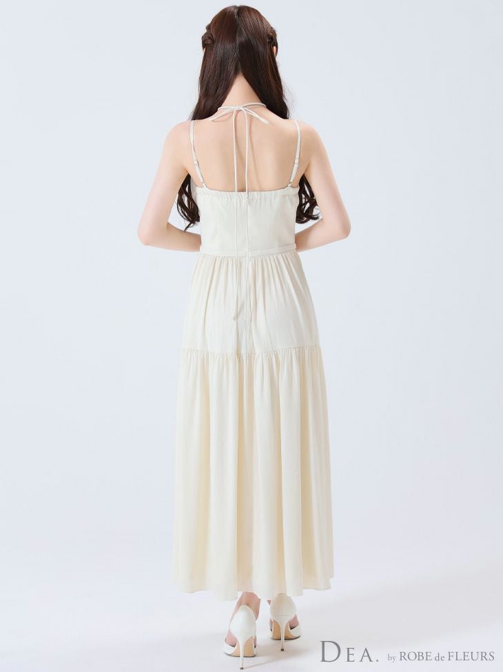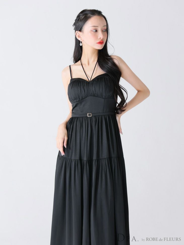 4. [DEA.byROBEdeFLEURS/ディアバイローブドフルール] 高級ホルターネックリボンキャミソールウエストベルトラメシフォンAラインロングドレス