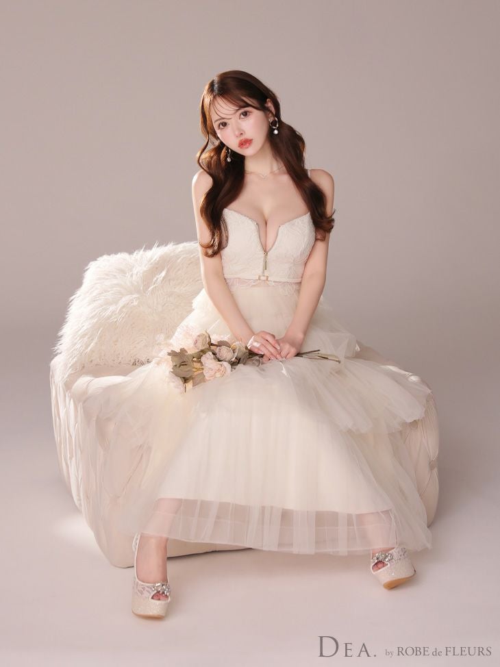 6. 予約商品【5月中旬入荷予定】[DEA.byROBEdeFLEURS/ディアバイローブドフルール] 高級キャミソールレースチュールウエストベルトジップAラインロングドレス