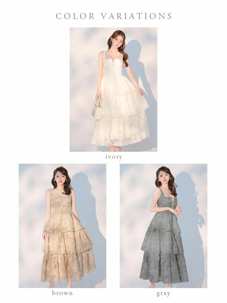6. [DEA.byROBEdeFLEURS/ディアバイローブドフルール] 高級 ブランド ワンピース Aラインロングドレス キャミソール ジップ ウエストベルト フラワー ティアードフリル オーガンジー